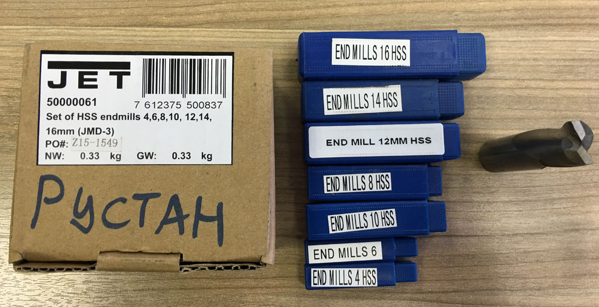 Набор концевых фрез из быстрорежущей стали 4, 6, 8, 10, 12, 14, 16 мм (50000061)