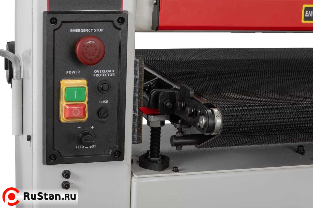 Такие системы обычно только в промышленных шлифовщиках. В станках JET раньше такого не было вообще. Теперь есть. Раньше была только аварийная кнопка-грибок на контрольной панели, здесь он тоже, конечно, есть. Консольный тип станка даст шикарную возможность обработать не только стандартную ширину в 457 мм, но и двойную ширину с переворотом.