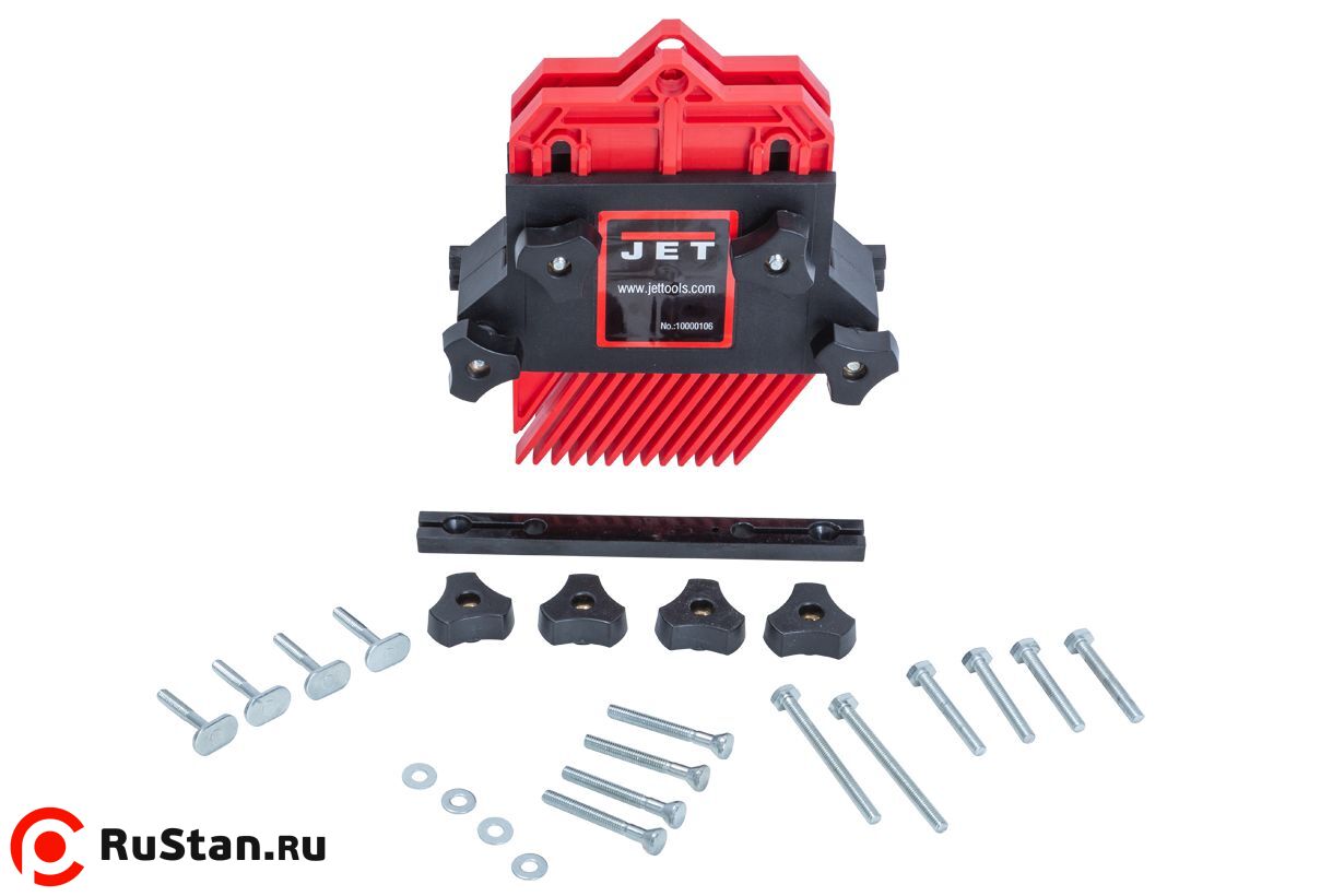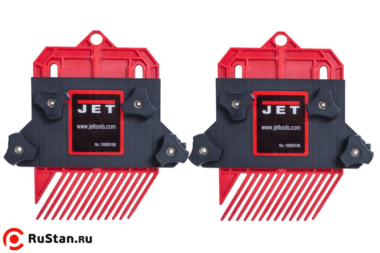 Пластиковые прижимы могут использоваться на фрезерных и пильных станках для фиксации заготовки сверху и сбоку совместно с другими направляющими упорами. Упругие пластины гребенки обеспечивают равномерное усилие прижима и блокируют обратный ход заготовки. Установка на станок производится креплением в Т-образном пазу с размером 19х9,5 мм штатно или 9х9,5 мм при удалении с крепежных винтов направляющей планки. Конструкция прижимов позволяет соединять их в один двойной, пропуская крепежные винты насквозь.