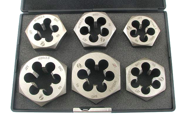 Набор плашек шестигранных из 6-ти штук М14-М24 9ХС DIN382 в дер. коробке "CNIC"