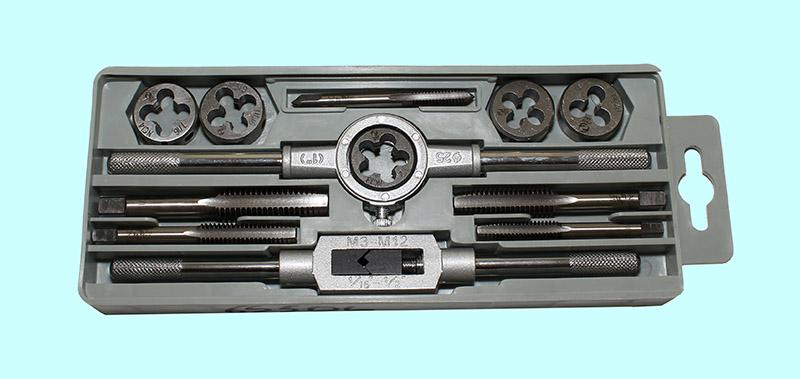 Вороток,плашкодерж-ль и по 5 метчиков и плашек UNC 1/4"-1/2" 9ХС в пласт.футляре (12 поз.) SP012-2 "CNIC"