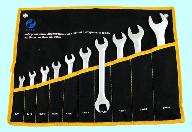 Набор ключей Рожковых из 10-ти шт. (6х7 - 27х30) в сумке хром-ванадий (сатингфиниш) #865 "CNIC"