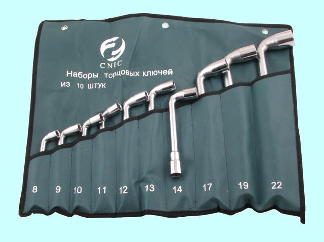 Набор ключей Торцевых коленчатых 2-х сторонних из 10-ти шт. 8-22мм хром, в сумке "CNIC"
