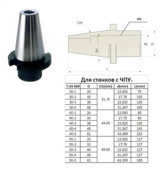 Втулка переходная с хв-ком 7:24-50 на КМ1 для станков с ЧПУ со сквозным отверстием для концевых фрез