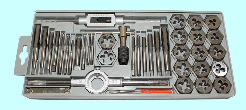 Вороток,плашкодерж-ль и по 17 метчиков и плашек М3-М12 9ХС в пласт. футляре (39 поз.) SP039-1 "CNIC"