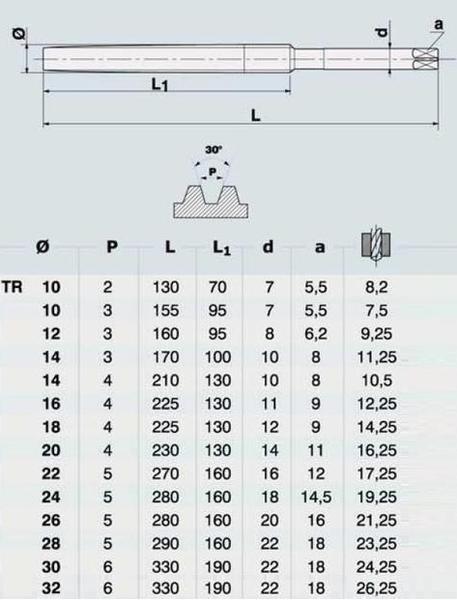 Метчик TR10,0 х 2,0 м/р.Р6АМ5 для трапецеидальной резьбы DIN 103 "CNIC" |