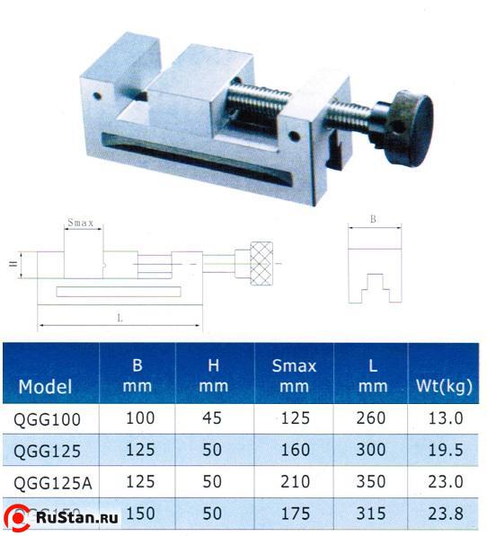Тиски Станочные 125мм прециз-ые сталь непов. ход 160мм // и перпенд. 0,005/100 HRС 58-62 "TLX" (QGG125) |