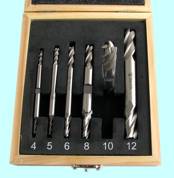 Набор Фрез концевых 2-х сторонних по металлу из 6шт. (d4, 5, 6, 8, 10, 12мм Z=3) Р18 в деревянном футляре "CNIC"