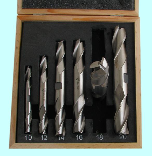 Набор Фрез концевых 2-х сторонних по металлу из 6шт. (d4, 5, 6, 8, 10, 12мм Z=3) Р18 в деревянном футляре "CNIC" |