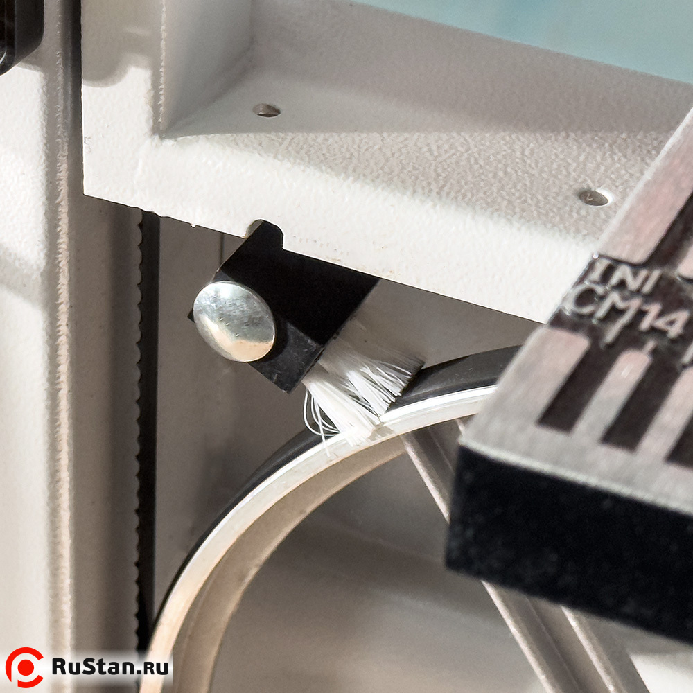 Для точной обработки большого количества одинаковых изделий в комплекте ленточной пилы имеются упор с линейкой и транспортир, с помощью которых устанавливается длина обрабатываемого изделия и угол среза на нём