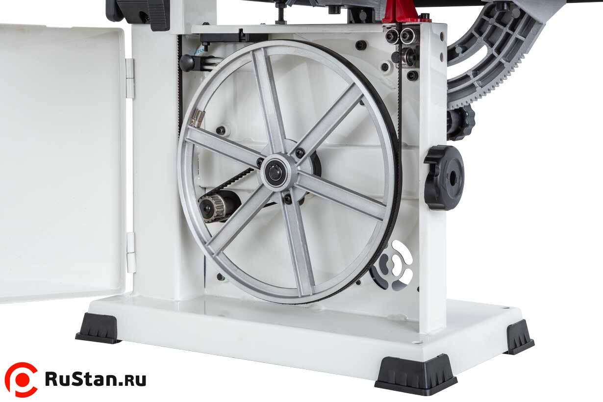 Важное достоинство JWBS-9SL – рычаг для быстрого натяжения и ослабления ленты, позволяющий оперативно переходить от состояния хранения к рабочему и обратно. Механизм имеет большой рабочий диапазон и нечувствителен даже к значительным неточностям длины полотна: инструкция допускает отклонения +/- 3 мм от штатных 1575 мм, но это значение указано «с запасом».