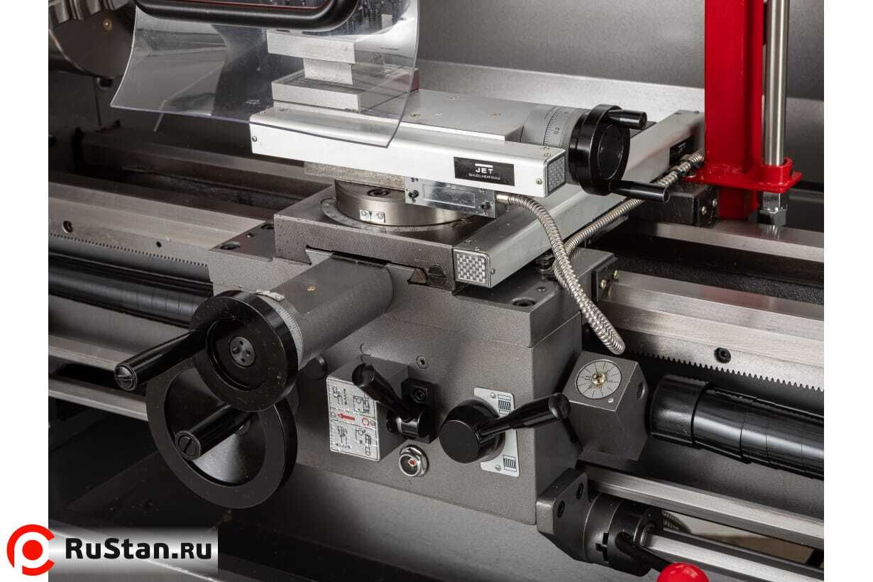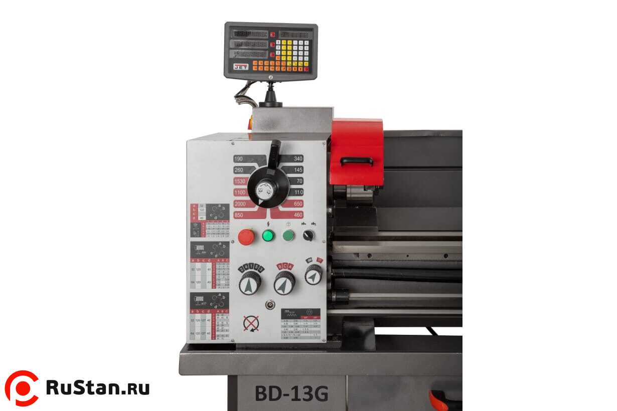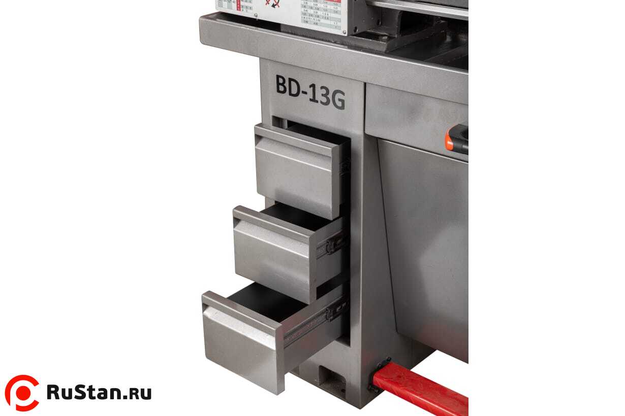 JET BD-13G имеет 15 типов продольных и поперечных подач в автоматическом режиме, а также позволяет нарезать 18-ть видов метрических и 13-ть видов дюймовых резьб. Для удобства нарезания длинных резьб, станок укомплектован резьбоуказателем. На станке предусмотрена возможность нарезания правой и левой резьбы