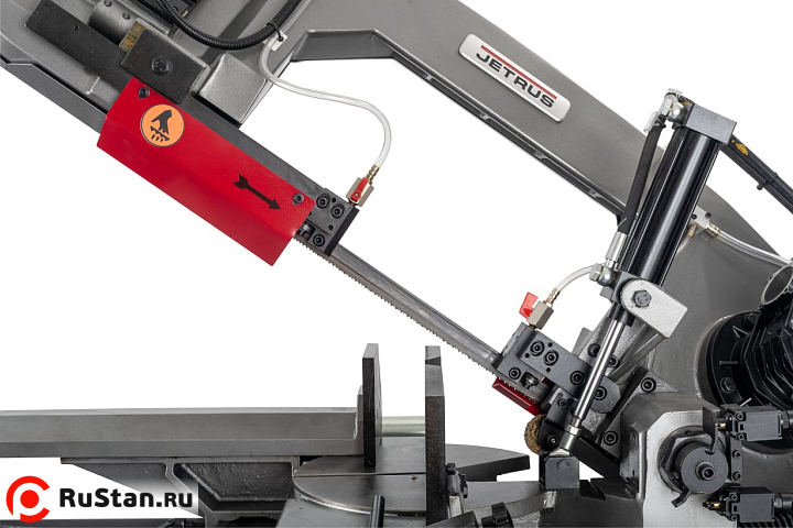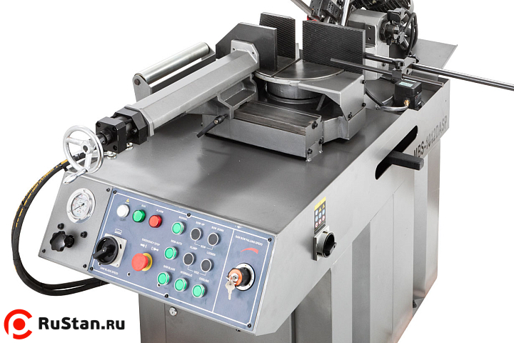Модель MBS-1012DASP имеет регулируемую направляющую для регулировки прохода ленточного полотна в зависимости от формы заготовки и ее диаметра. Направляющие блоки осуществляют позиционирование полотна непосредственно под прямым углом к поверхности обрабатываемой заготовки. Максимальная стойкость ленточного полотна обеспечивается подачей СОЖ в зону резания.