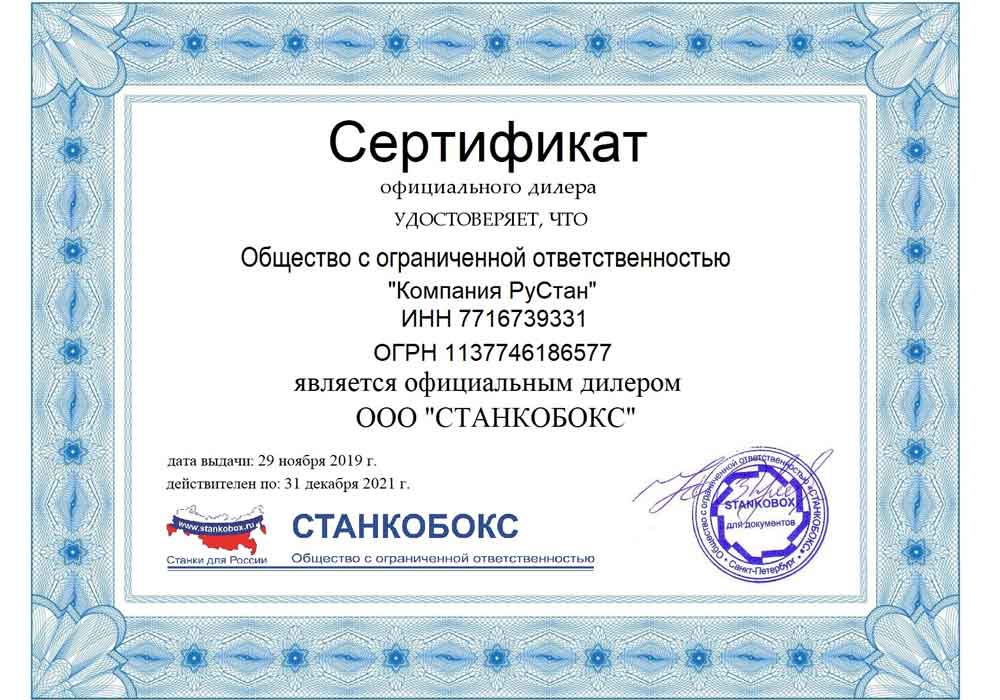 Сертификат: Официальный дилер