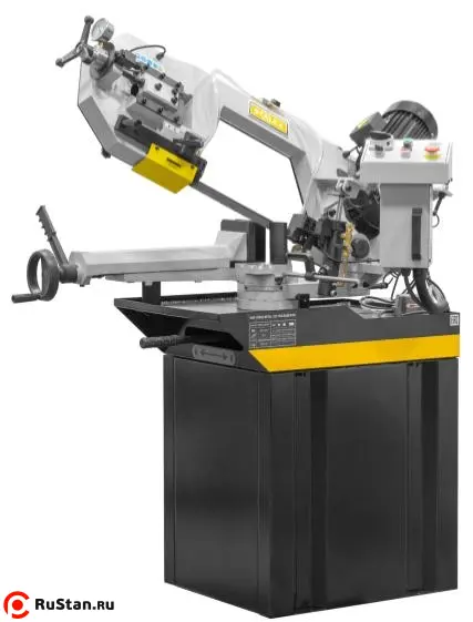 Модель имеет быстрорегулируемые тиски для резки под углом, поворачивается рама, а не заготовка. Тиски с системой быстрого отвода ускоряют процесс смены заготовки (ускоренный отвод подвижной губки происходит без вращения маховика). Зажим заготовки осуществляется тисками вручную, подача заготовки - также вручную. Наличие системы СОЖ в стандартной комплектации – позволяет добиться высокой производительности.