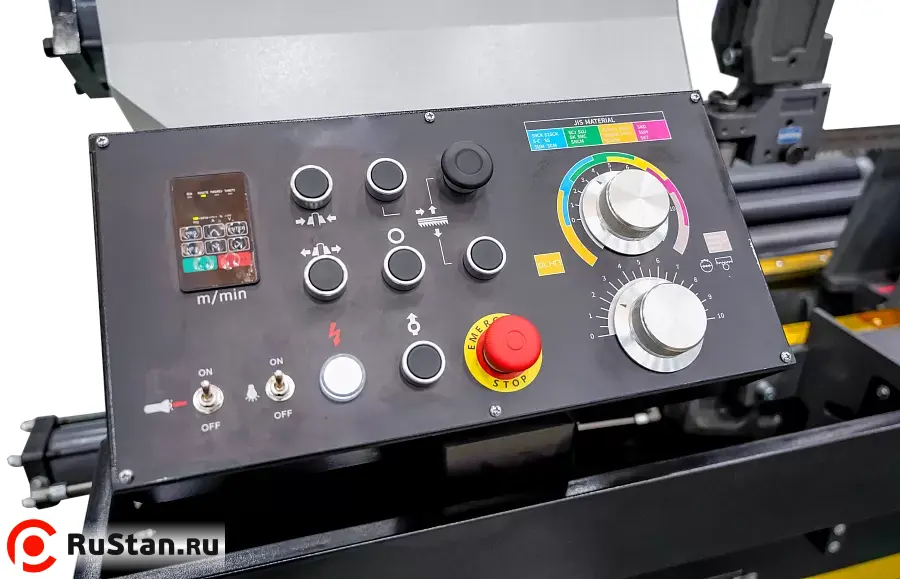 Станок поддерживает работу в ручном и автоматическом режимах. В автоматическом режиме выполняется полный цикл резания: зажим заготовки, запуск пилы, опускание рамы, остановка пилы, подъем рамы, отжим тисков. Оператору требуется только подать заготовку и нажать кнопку «Пуск».