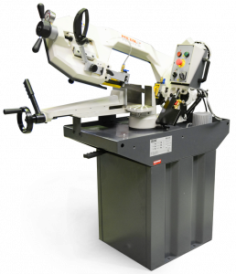 Полуавтоматический ленточнопильный станок, предназначен для пиления труб, металлических заготовок, максимальным диаметром круга 300 мм и прямоуольной заготовки 500x300 мм под углом 90°. Одностоечные ленточнопильные станки имеют вертикальную стойку (колонну) большого диаметра по которой вверх-вниз перемещается горизонтальная пильная рама. Пильная рама, представляет собой стальную сварную конструкцию.