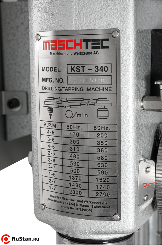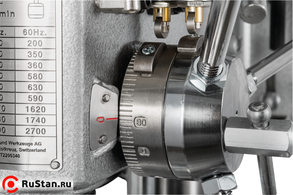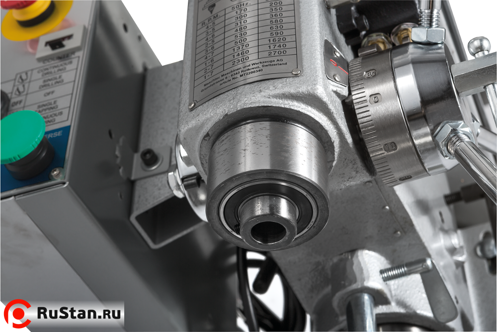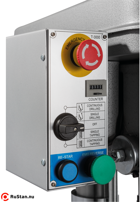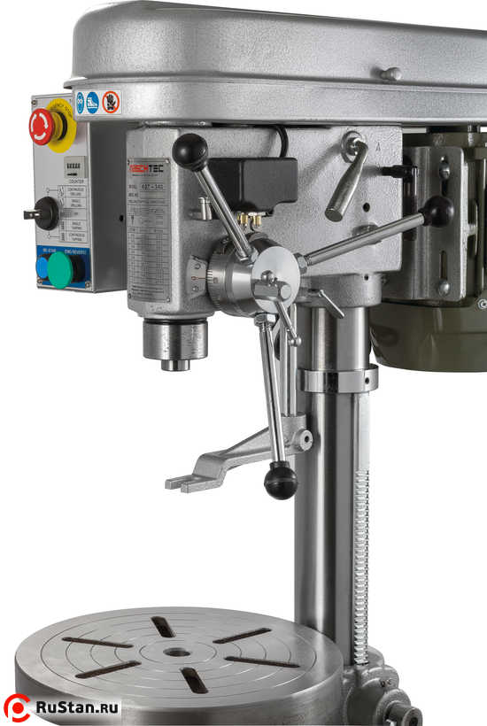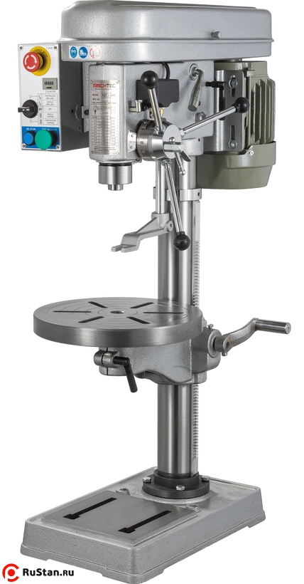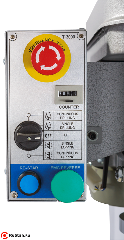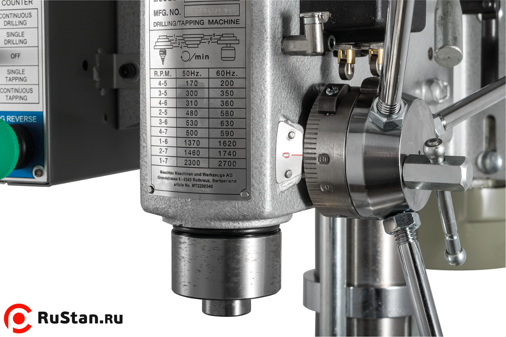 Особенностью станка является электрическое управление реверсом шпинделя. Для нарезания определенного диапазона резьб на этом станке в достаточно жестко закрепить метчик в сверлильном патроне! Глубина сверления/резьбонарезания регулируется дополнительным концевым кулачком. Станок предназначен для промышленного применения.