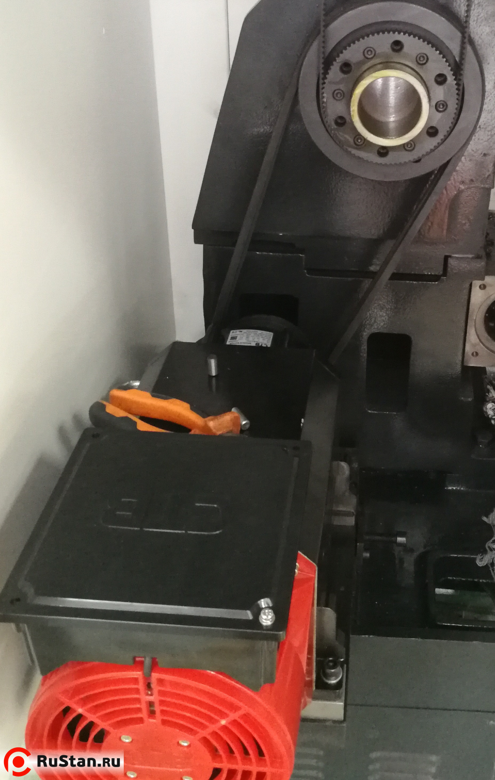 В базовой комплектации серводвигатель шпинделя CTB-47P5ZXC10-40, номинальной мощностью 7,5 кВт (максимальная 11 кВт, время работы ограничено 30 мин.) поддерживающий постоянство скорости резания при изменении диаметра детали. Позволяет жёсткое нарезание резьбы метчиком. Максимальный крутящий момент развиваемы на шпинделе 262 Нм.