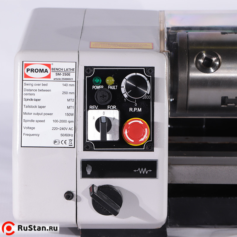 Настольный токарный станок PROMA SM-250E предназначен для обработки небольших заготовок из металлов и др. материалов в виде тел вращения. На токарном станке производят точение поверхностей, нарезание резьбы, сверление, зенкерование, зенкование, развертывание и т.д. Благодаря своим габаритам и потребляемой мощности, станок можно использовать даже в домашней мастерской.