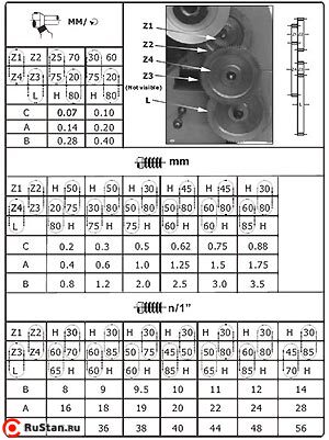 Выбор режима (шага) резьбонарезания осуществляется при помощи сменной гитары.