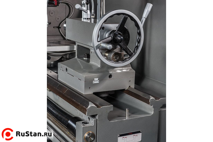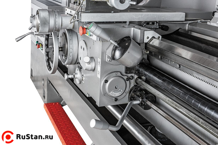 Пониженная скорость 9 об/мин выставляется при необходимости нарезания резьбы плашкой. На станке предустановлены 80 режимов продольных и поперечных подач, что позволяет нарезать метрическую, дюймовую, модульную и питчевую резьбы с повышенным уровнем точности. При этом биение на шпинделе не превышает 9 микрон. Привод шпинделя постоянно находятся в масляной ванне, что способствует охлаждению, снижает уровень шума и продлевает срок эксплуатации станка. Для уменьшения вибраций и качественного теплоотвода от инструмента и шпинделя станок установлен на массивную станину из особопрочного чугуна.