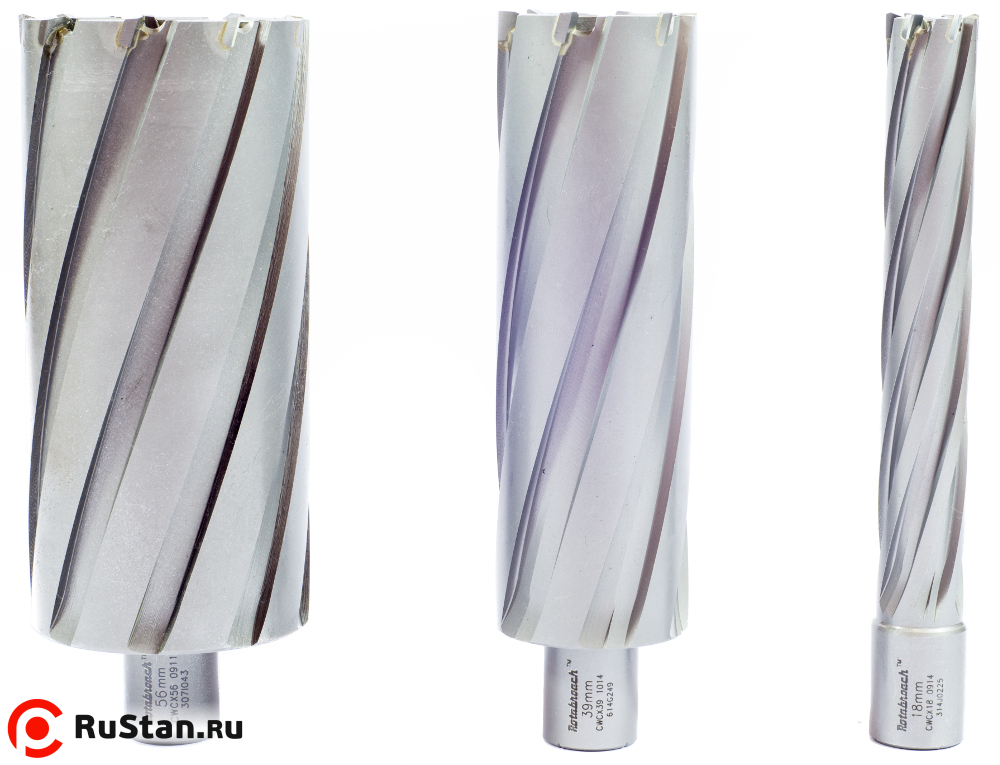 Высокопрочные кольцевые фрезы по металлу с твердосплавными пластинами эффективны для резки твердых материалов на высоких скоростях, поэтому используются для бурения железнодорожных рельс, нержавеющей стали, сложных сплавов, цветных металлов: алюминий, медь, латунь и т.д.